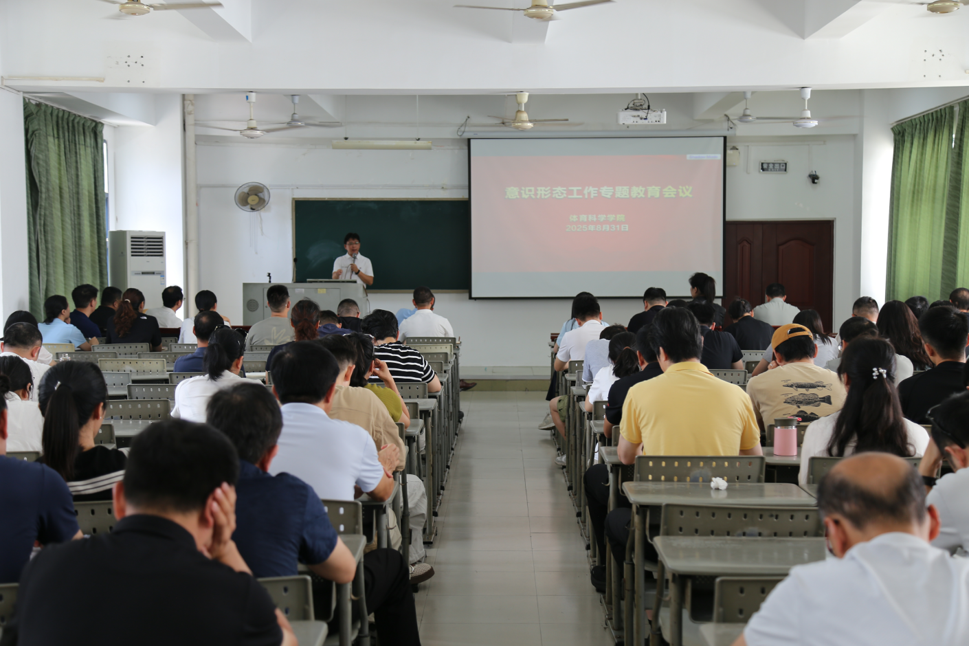 8月31日上午,我院党委在体综楼209教室召开全院教职工大会,深入开展意识形态工作专题教育活动。会议由院党委书记陈振祯主持。