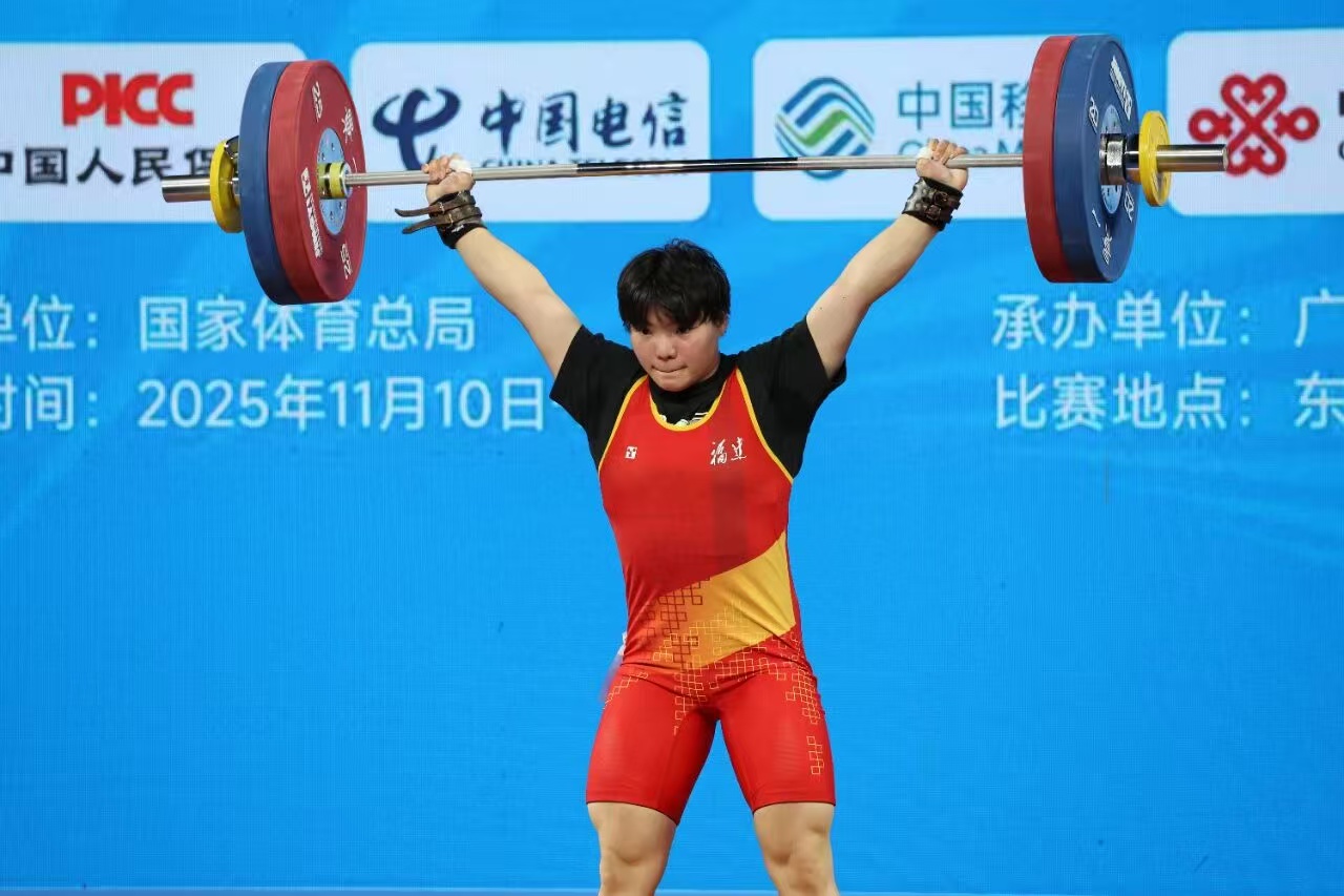 11月12日,在第十五届全国运动会举重女子71公斤级决赛中,2024级运动训练专业本科生何仁秀,奋勇拼搏,勇夺银牌。